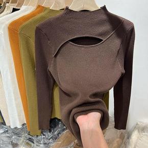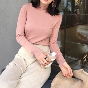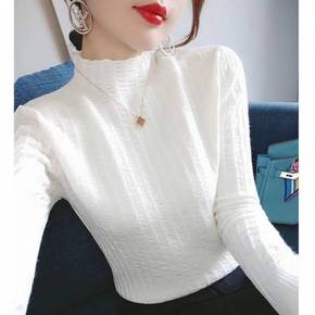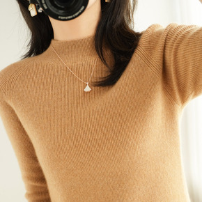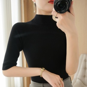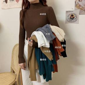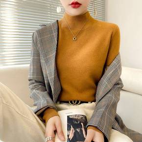 春秋内搭针织衫套头毛衣女修身纯色非羊绒中袖半高领打...