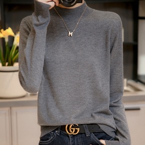 羊毛衫女士100 纯羊毛精纺薄款微透毛衣针织衫半高...