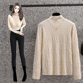 加绒加厚大码半高领韩版女装宽松针织衫中长款打底衫毛...