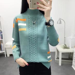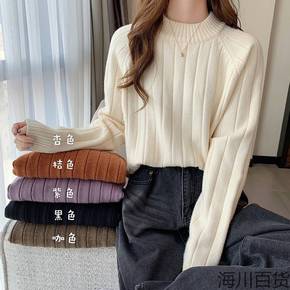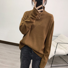 秋冬2021年新款半高领宽松加厚女士毛衣外穿洋气针...