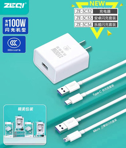 泽奇100W多兼容闪充手机充电器适用华为快充套装安...