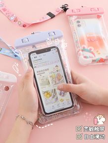 手机袋可触屏游泳漂流透明卡通挂脖潜水套华为苹果气囊...