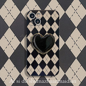 款式:保护壳 风格:ins风,格纹,英伦 流行元素:格纹、英伦、ins风 颜色:金边黑色爱心...