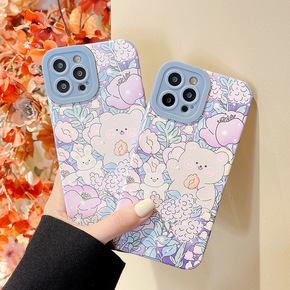 适用可爱卡通紫色花丛小熊华为nova8手机壳畅享9...
