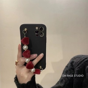 酒红爱心链条适用荣耀30/50pro手机壳v40/...
