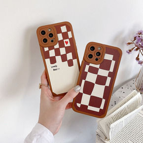 适用ins棕色小众不规则格纹爱心适用荣耀50手机壳...