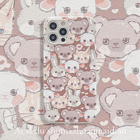 适用韩风小熊可爱苹果13手机壳12卡通X60腕带支...