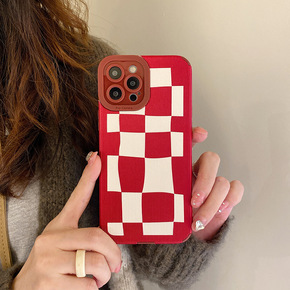 适用新年红色不规则格纹华为nova5手机壳p30p...