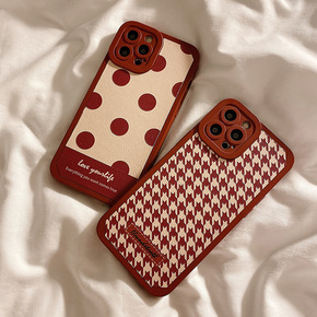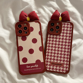 适用酒红波点千鸟格蝴蝶结立体荣耀50手机壳新年华为...