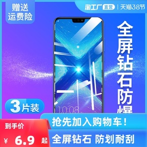 适用华为畅享9钢化膜防摔8plus全屏荣耀8透明麦...