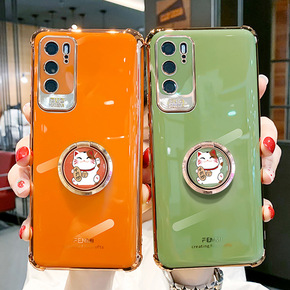 适用华为p40pro+手机壳招财猫支架p40硅胶保...
