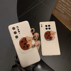 复古白Mate30华为手机壳支架饼干小熊P40pr...