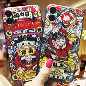 磨砂适用iPhone13手机壳浮雕财神苹果12个性...