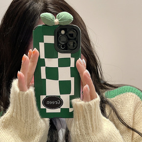 适用绿色不规则棋盘格蝴蝶结适用荣耀60手机壳华为n...
