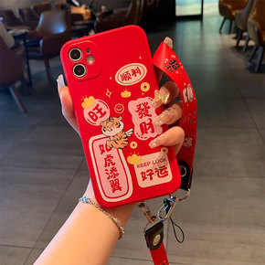 适用新年酒红线条喜庆老虎支架荣耀30/S手机壳华为...