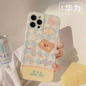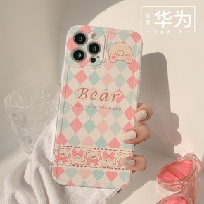 日韩风蓝菱格熊华为nova7手机壳荣耀30硅胶P4...