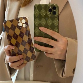 苹果13粉绿格子支架iphonexs全包7plus...