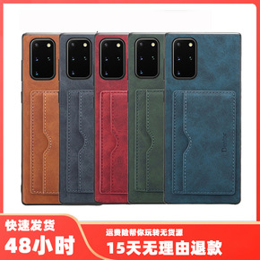 适用三星Note20商务磨砂仿牛皮插卡支架手机壳N...