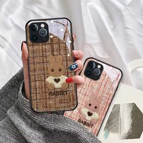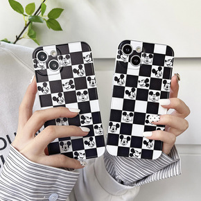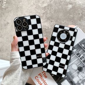 适用iPhone13方形潮牌幻彩格纹手机壳苹果12...