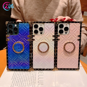 适用iPhone13镭射花朵手机壳苹果12方形TP...