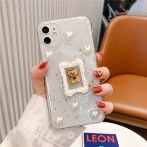适用苹果13透明软壳12珍珠手链手机壳11小众vi...
