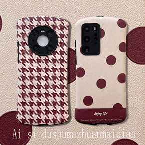 适用清新少女酒红波点千鸟格适用荣耀60手机壳华为n...