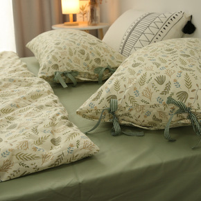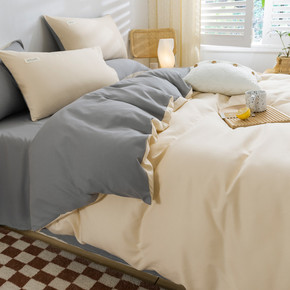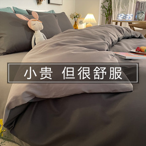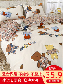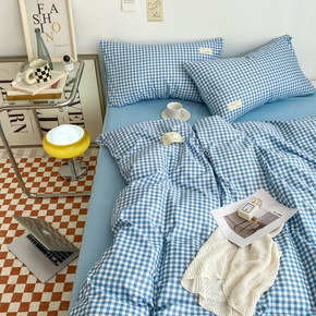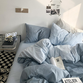 日式水洗棉双拼四件套纯棉三件套学生宿舍床笠款纯色全...