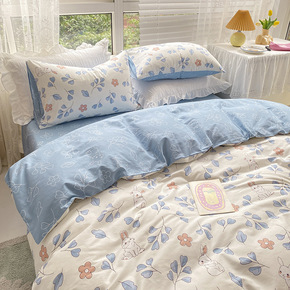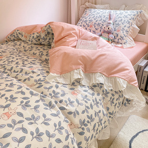 ins可爱小清新碎花棉床单被套四件套3学生宿舍全棉...