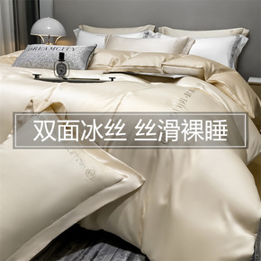 夏季水洗真丝冰丝四件套冰丝裸睡床单被套轻奢北欧单人...