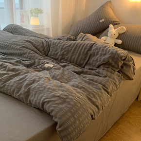 四件套简约灰色泡泡水洗棉四件套色床单床裙男学生宿舍...