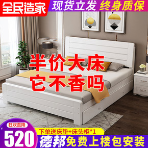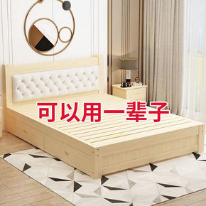 。实木床1.8松木双人床1.5经济型成人现代简约原...