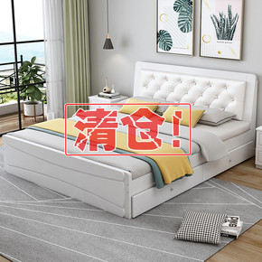 实木床 现代简约双人床1.8米主卧1.5m高箱储物...