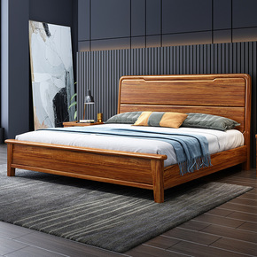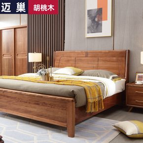 实木床胡桃木实木大床单人床双人床木蜡油高箱床美式田...