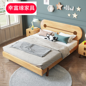 新款夜灯北欧实木床现代简约单人床1.5米1.8米双...