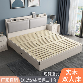 床 出租屋实木1.8米双人床成人主卧1.5m简约1...