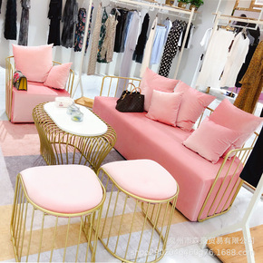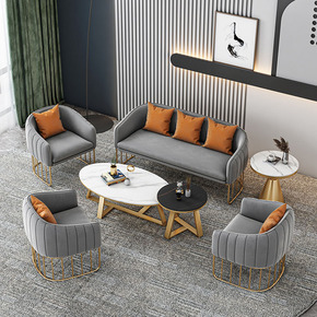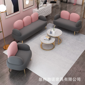现代网红布艺沙发茶几组合北欧轻奢奶茶店工作室接待会...