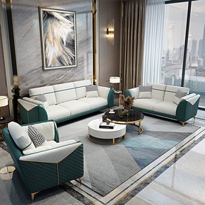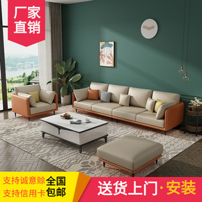 轻奢真皮沙发组合客厅后现代简约意式三人位大小户型皮...