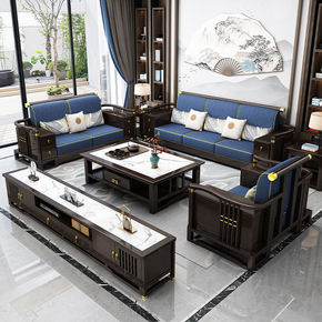 新中式沙发组合 现代别墅客厅实木真皮沙发样板房中国...