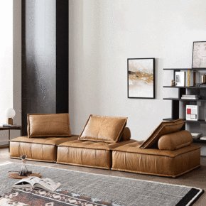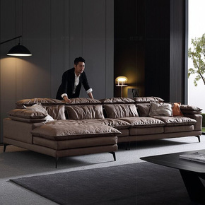 科技布羽绒沙发现代简约客厅组合乳胶沙发免拆洗棕色懒...