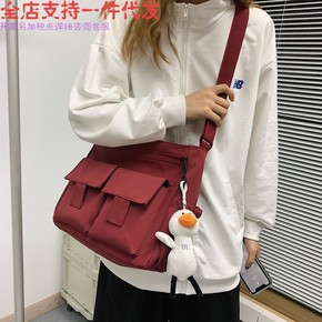 斜挎包女工装帆布包ins日系百搭单肩包邮差包大容量...