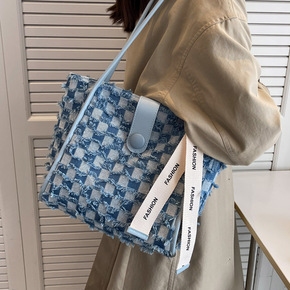 日系软妹百搭可爱毛绒小包包潮纯色托特毛毛包单肩包女...