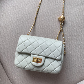 2022春夏新款真皮羊皮金属球小香风菱格链条小方包...