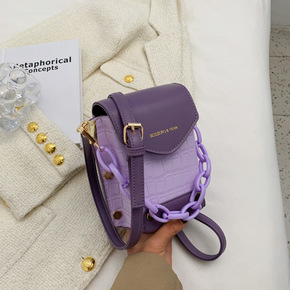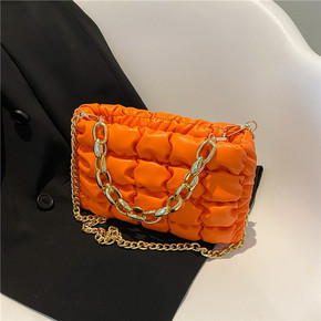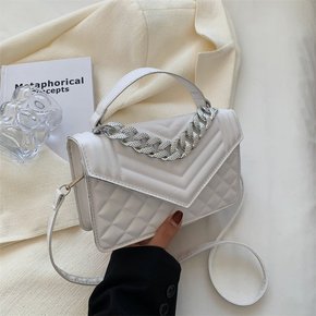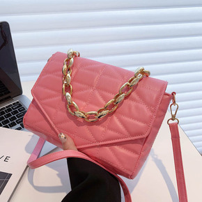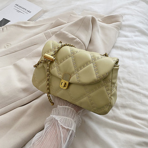 批发小包包女2022新款纯色菱格链条包质感洋气绣线...