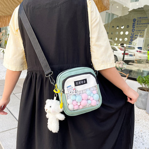 韩版可爱少女小挎包2022新款日系古着感透明单肩包...