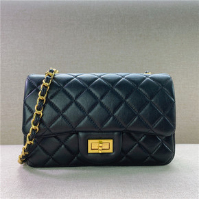 2022新款头层牛皮小香风菱格链条小方包时尚百搭单...