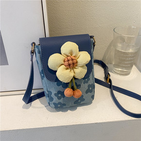 洋气少女花朵小包包女2022新款夏季质感斜挎包布包...