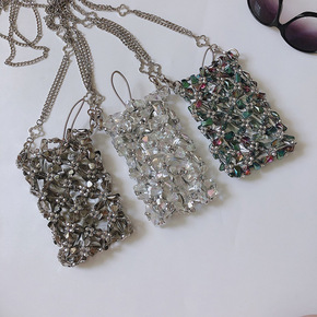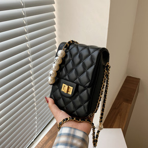 菱格香风手机斜挎小包包女2021新款潮温柔风珍珠链...