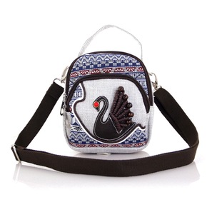 新款小清新斜跨包天鹅手工编织棉麻斜挎包文艺古风女士...