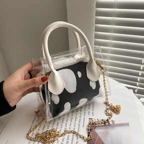 现货包包女迷你ins小圆包链条透明印花单肩斜挎包女...