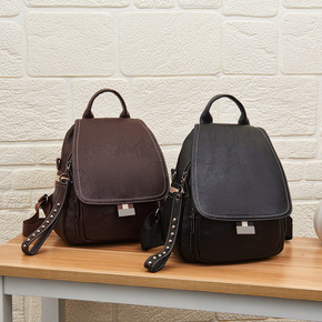 单肩双肩包两用女包2021新款复古时尚休闲软皮大容...